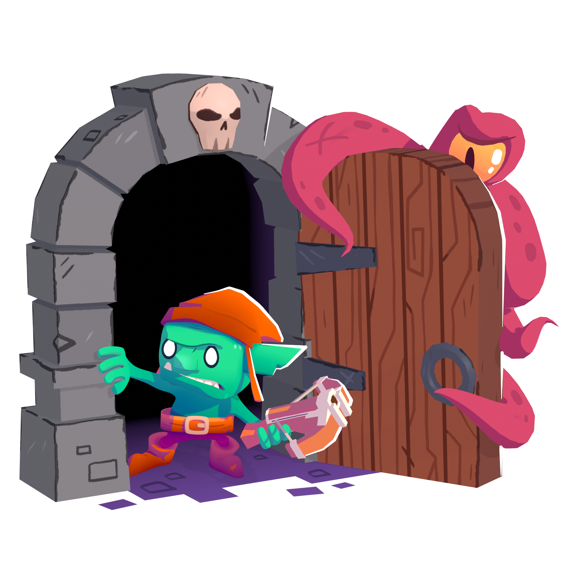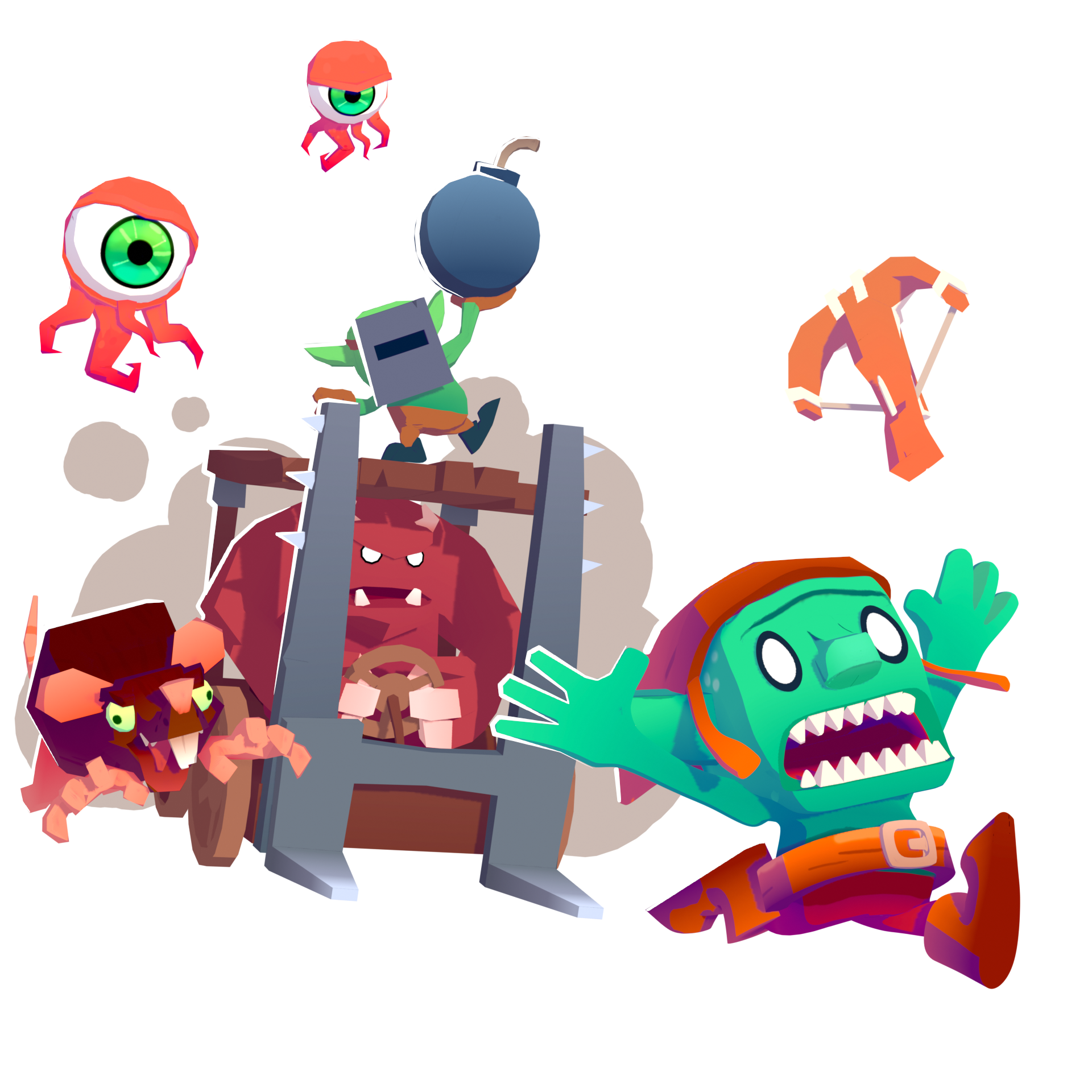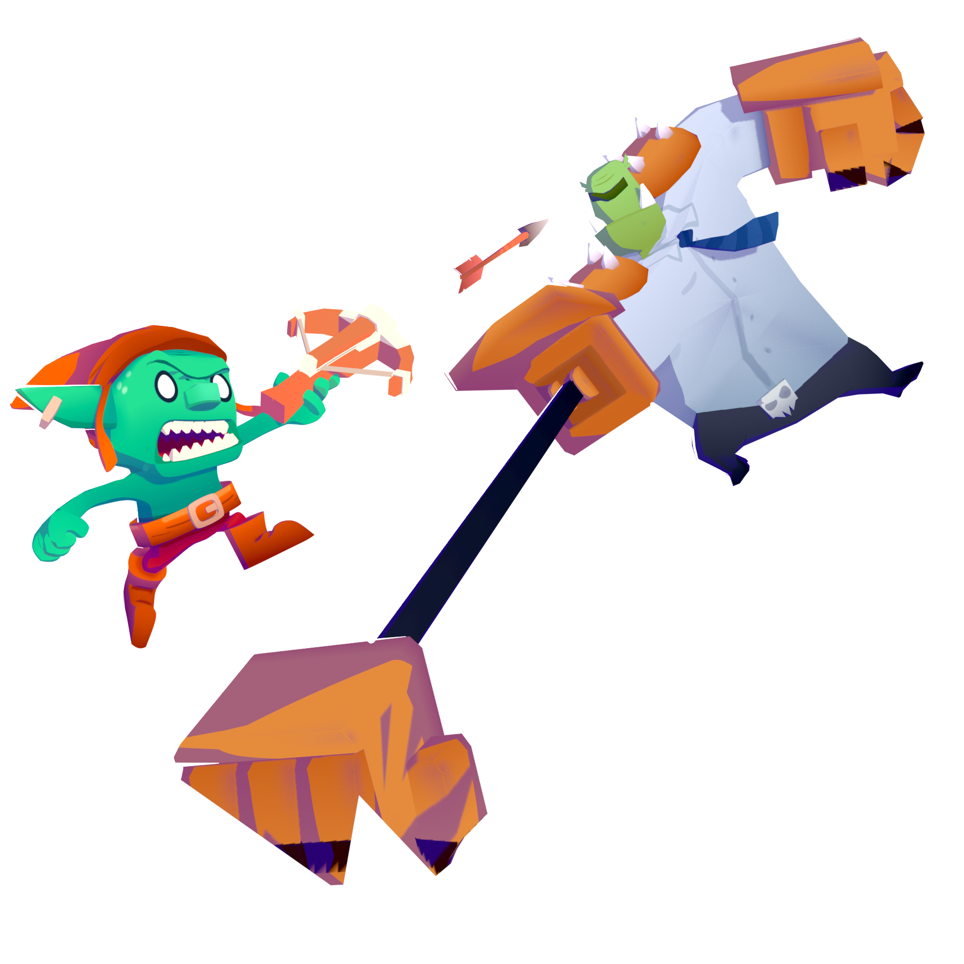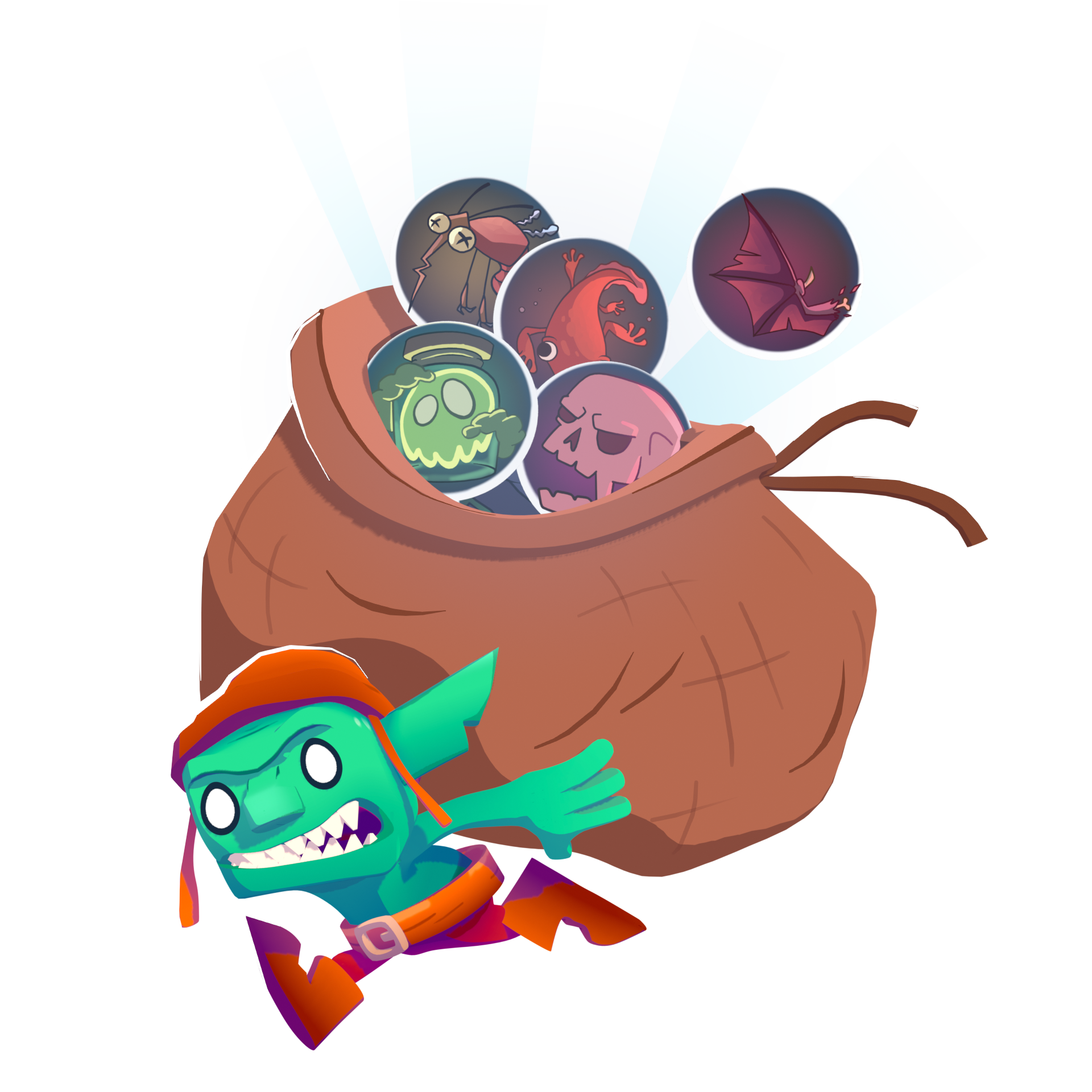 Powerup your underling with wacky magical items, and discover fun synergies like homing fire arrows, health leeching spin shots, and more!